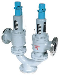 A38Y、A43H、A37H型雙聯(lián)安全閥是在Y型接頭上裝設(shè)兩個(gè)同樣規(guī)格的A48Y或A47H型安全閥而構(gòu)成,其公稱通徑系列指Y型接頭進(jìn)口通徑,其組合情況如下表: