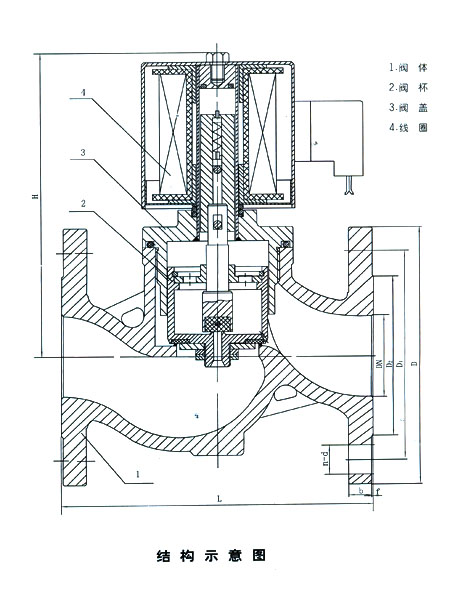 常開電磁閥,線圈通電后,街鐵在磁力作用下下移,推動副閥閥塞下移,直到和副閥座壓緊,副閥關閉,由于主閥閥杯上下壓差趨于相等,主要閥閥杯由磁力和自重壓緊密封面,閥門關閉。線圈斷電,磁力為零,街鐵和副閥閥塞由彈簧作用上升,副閥打開,主閥閥杯為內介質經副閥流走,壓力下降,主閥閥杯由上下壓差作用向上升起,主閥打開,閥門開啟。