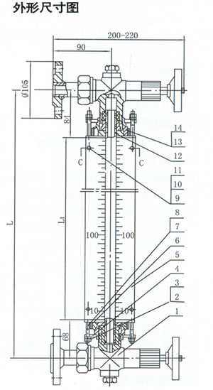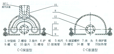 儀表的上下閥上裝有法蘭接頭,與容器連接構(gòu)成連通器,由玻璃管內(nèi)直接指示容器內(nèi)的液位。