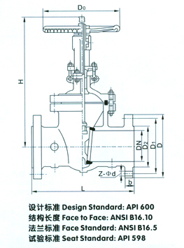 磅級 規(guī)格 通徑 單位 L H(全開) D D1 D2 b z-φd D0